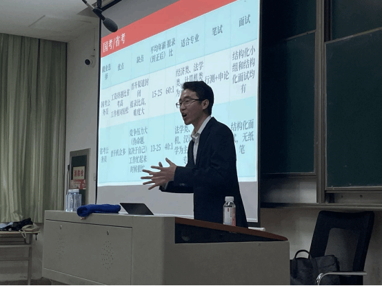 在本次讲座中,由祝文峰老师担纲主讲,他深入剖析了当前就业市场的新趋势、新动态。为了让同学们更直观地理解就业形势,祝老师以国考相关岗位为切入点,详细阐述了岗位需求的变化规律,帮助大家把握就业市场的脉搏。以此同时,祝文峰老师还倾囊相授,向同学们分享了一系列实用的应试技巧。他详细讲解了如何精准训练行测思维,提升解题效率;如何撰写高质量的申论文章,展现个人综合素质;以及如何在面试中脱颖而出,展现自己的独特魅力。祝老师用其生动有趣的语言风格,将原本枯燥的应试技巧讲解得栩栩如生,极大地激发了同学们的学习兴趣和参与度。