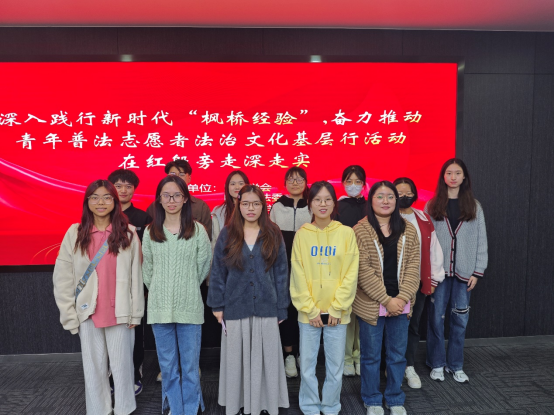 11月23日下午,Beat365亚洲版官网入口法学专业教师胥玲英、殷杰敏带领学生参加“深入践行新时代‘枫桥经验’,奋力推动青年普法志愿者法治文化基层行活动在红船旁走深走实活动”。活动由南湖区委政法委、区法学会、区社会治理中心联合举办。