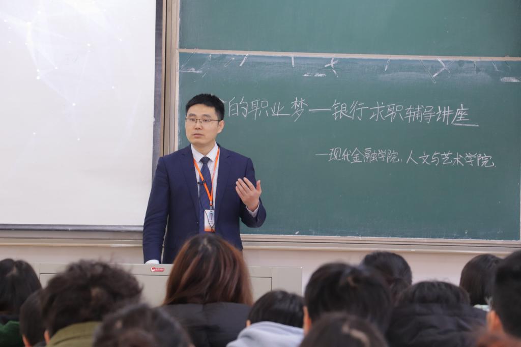 讲座伊始,刘在旭经理先给同学们讲述了我国古代、近代以及现代银行的发展历程,详细介绍了银行的演变过程,突出了银行在历史进程中的重要性。之后向同学们提问关于对银行的看法,互相交流了各自的想法。并且通过对近年来就业的数据分析,介绍了择业的重要性。提出大学生必须要提高自身的竞争优势,择好业、早就业。刘在旭经理在对整个就业招聘方面进行分析后,总结并强调招聘岗位及选择的重要性。