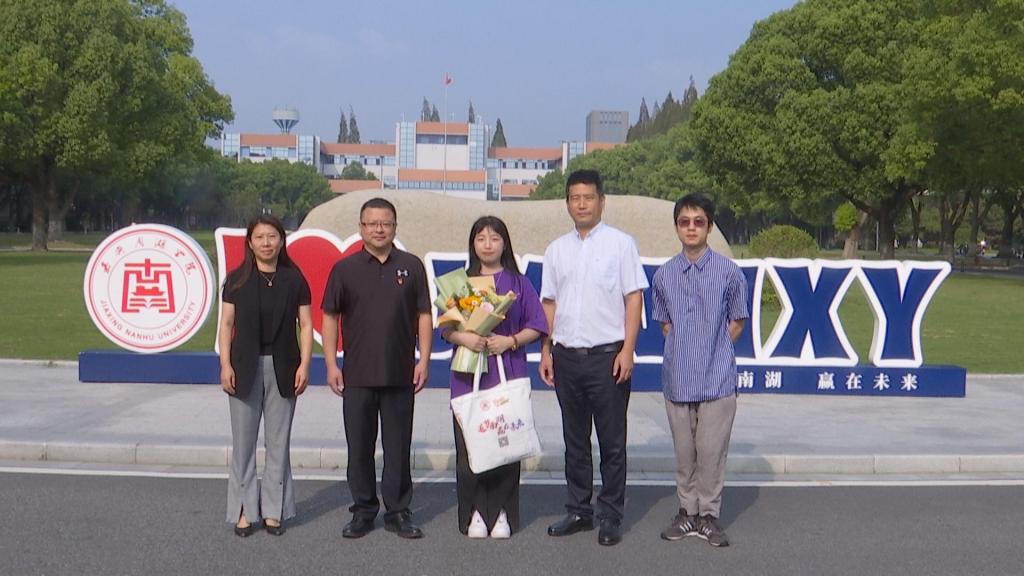 欢送仪式上,嘉兴南湖学院党委副书记胡文蔚为进京参加志愿讲解的徐嘉玲送上了鲜花,鼓励并叮嘱她注意事项。