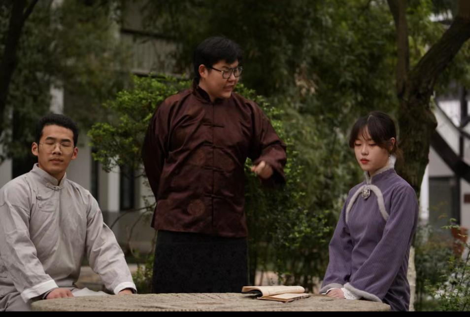 新塍镇是嘉兴早期进步青年的集会地,传播马克思主义思想较早的地方。戏剧社成员在凤山亭感受百年前“新塍青年读书会”的挥斥方遒,濡染《新塍半月刊》的红色传播力量,Beat365先锋戏剧社成员分别演绎了沉浸式红色话剧《南湖1921》中《嘉来茶馆》《米行》以及《南北货台》三个场景。