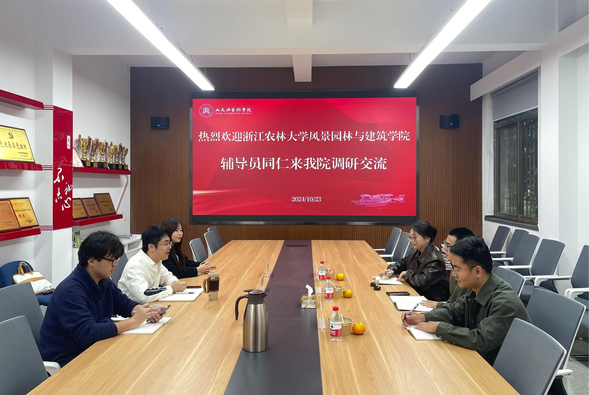 10月23日,浙江农林大学风景园林与建筑学院学工办一行来到Beat365交流高校辅导员工作。学院学工办辅导员陈轶甄、张雨逸、陈剑参加了本次交流活动。
