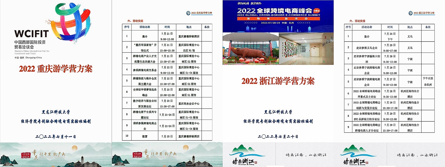 beat365官方网站专创融合跨境电商实验班为拓宽学生专业化视野,丰富学生阅历,培养学生国际化、多元化文化理念和思维习惯,了解当前会展贸易和跨境电商前沿理念,提高学生综合素质能力,举办了2022暑期游学营系列活动。游学营活动负责老师籍丹宁和刘黎明经过前期的周密安排和计划,7月21-24日在重庆组织了2022重庆游学营,7月25-29日在义乌、宁波和杭州三地组织了浙江游学营活动,共有14名实验班学生参加了此次活动。