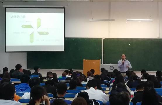 贺书记首先从四个方面阐释了大学的内涵,借助送给同学的九句话向大家明确了大学的意义;接着,从考研、就业、留学等几个方面鼓励大家尽早确定大学学习的目标;最后指出作为大一新生,要学习专业知识,提升综合素质,做好时间管理,从而为顺利毕业、将来进入社会做好铺垫。