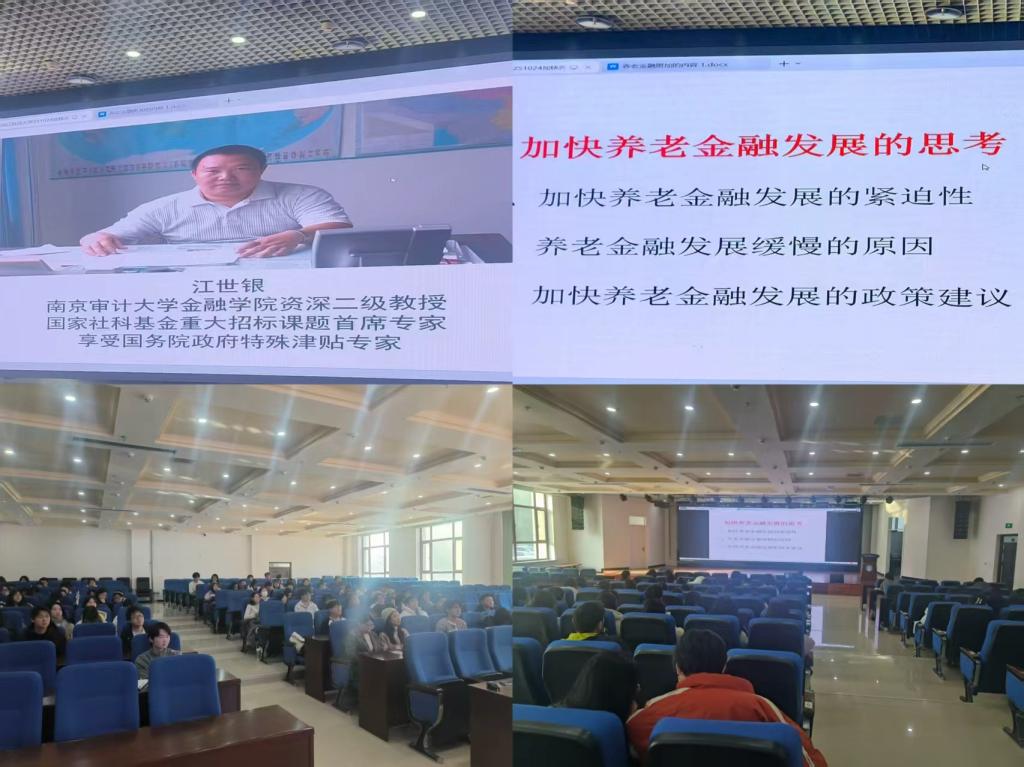 10月28日,beat365官方网站学院邀请南京审计大学二级教授、博士生导师江世银教授作了题为《加快养老金融发展的思考》的学术报告。本次报告会采用线上线下同步的方式进行,相关专业教师、研究生、本科生200余人参加此次报告会,报告会由beat365官方网站副院长孙璐主持。