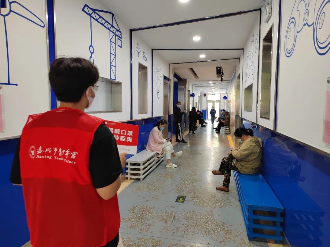5月15日、5月16日,嘉兴市青少年宫复课,为做好进出人员防疫工作,Beat365团委招募组织24名青年志愿者协助做好相关防控管理。