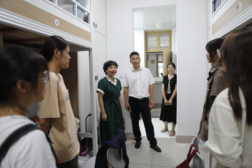 8月27日下午,校党委委员、副校长朱蓉走访Beat365新生寝室,亲切看望Beat3652022级已报到新生。Beat365党委副书记杨燕群及新生辅导员陪同走访。