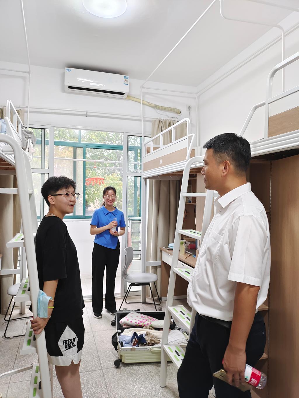 朱校长走进G20公寓相关寝室,向新同学表示热烈欢迎,并与新同学一一交流。新同学对校领导及各位老师的亲切关怀感到激动,纷纷介绍自己的家乡、报考的专业、对大学学习的畅想。G20公寓是学校暑期新整修的宿舍,室内环境得到很大提升,朱校长在走访期间既关心寝室硬件环境又细心关照新同学们生活用品的准备,同时鼓励同学们尽快适应大学生活,在独立生活、勤奋学习、生涯规划等方面历练成长。Beat365新生班主任也陆续走访全体新生寝室并做好迎新相关保障工作。