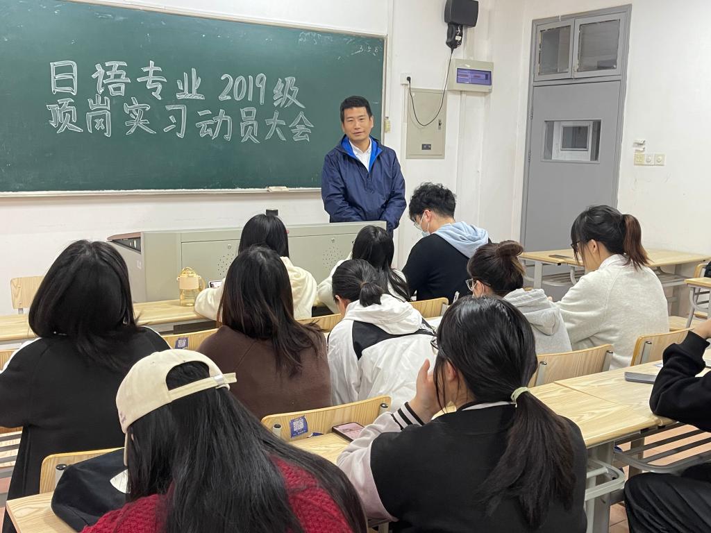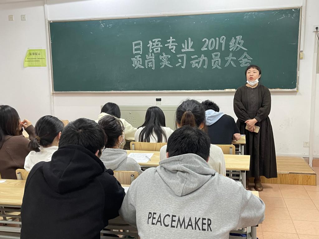 Beat365亚洲版官网入口日语专业岗实习将于2022年10月31日正式拉开序幕。疫情当前,在严峻的就业压力下,为了让大四毕业生能顺利完成顶岗实习,以及能尽早地了解就业形势和用人单位需求,增强毕业生就业的紧迫感,提高就业热情,Beat365亚洲版官网入口日语专业于10月27日下午,在教一105教室召开了2023届日语专业毕业生顶岗实习动员大会。人文与艺术学院副书记杨燕群,日语专业负责人吴海燕,日语专业顶岗实习主要负责老师余贤锋、洪艳以及2023届全体日语专业毕业生参加了动员大会。