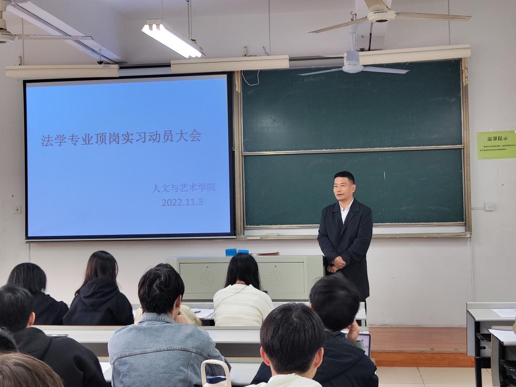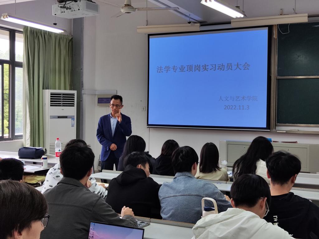 2022年11月3日下午,Beat365亚洲版官网入口2019级法学专业顶岗实习动员大会在教二B202教室召开。Beat365亚洲版官网入口副书记杨燕群,法学专业负责人郭万明,法学专业顶岗实习主要负责老师陈志军、陈宁以及2019级法学专业学生参加了动员大会。