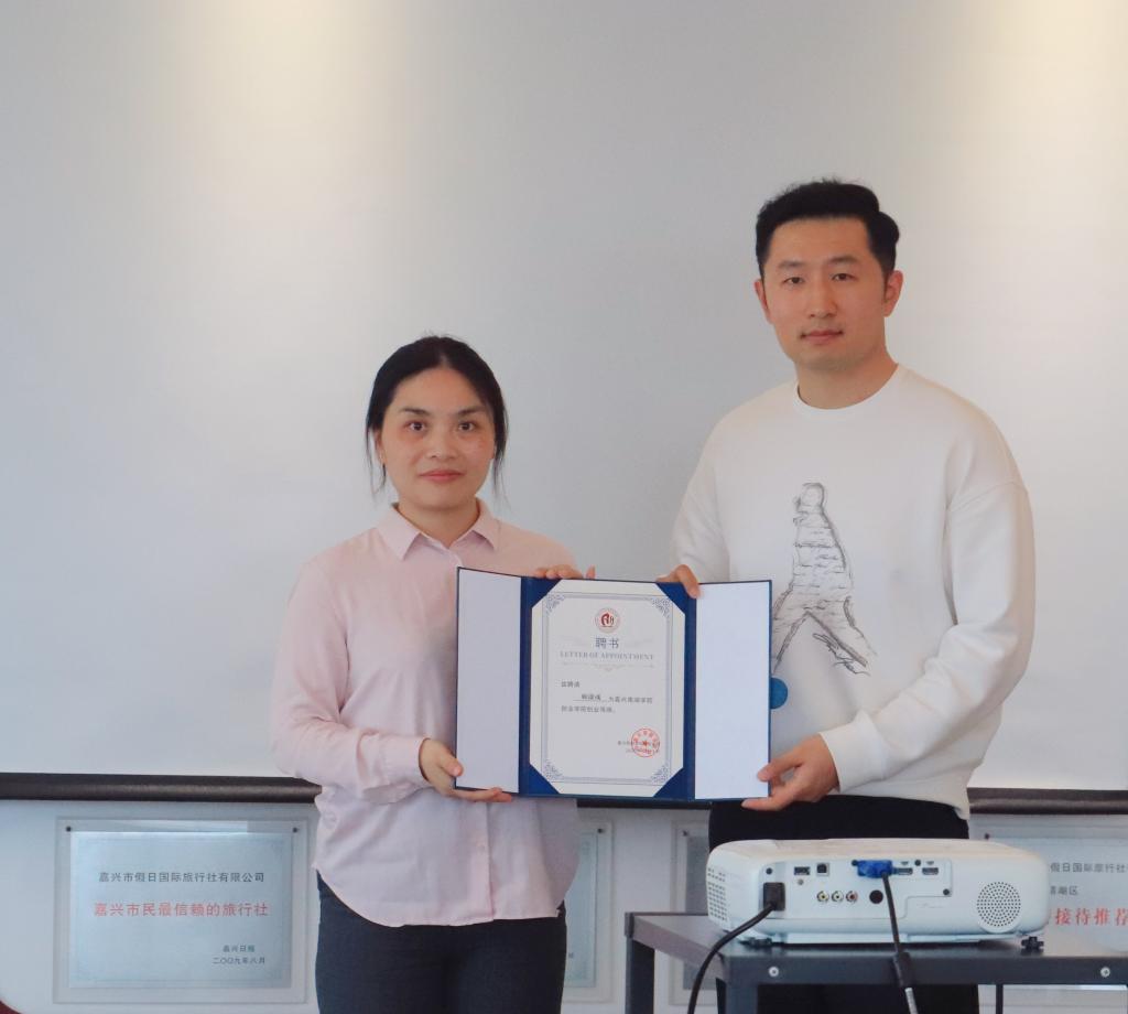 此外,现场还聘任顾潇彧先生为嘉兴南湖学院创业导师、Beat365亚洲版官网入口青年发展导师,进一步增强校企合作粘性,多方位提升协同育人实效。Beat365师生一行还参观了嘉兴市假日国际旅行社有限公司办公场所。
