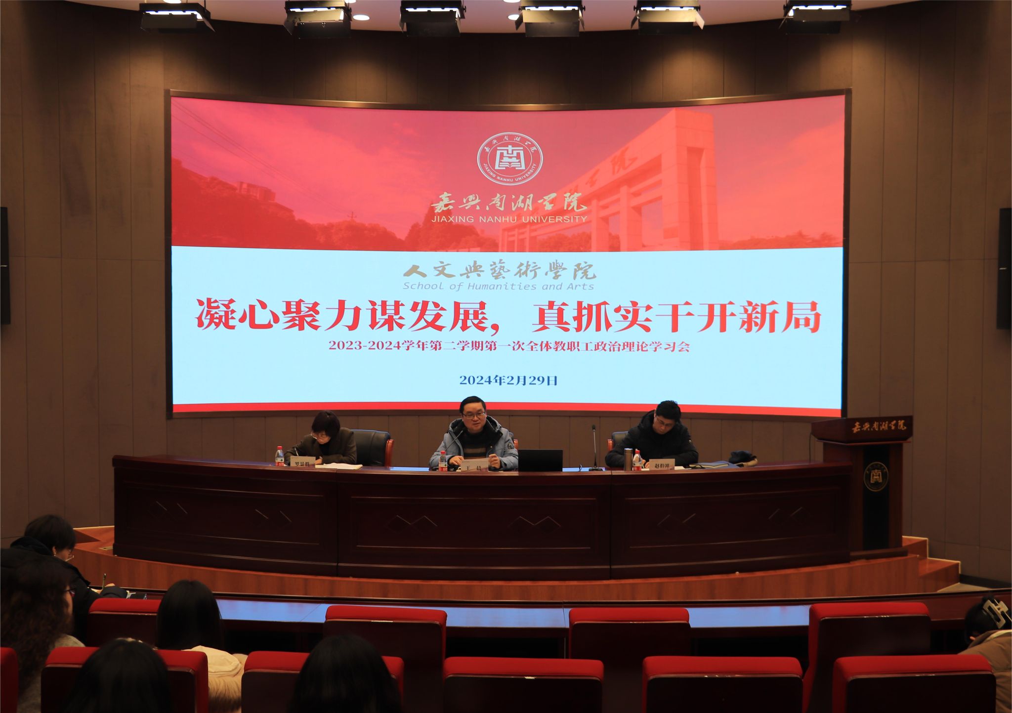 2月29日下午,Beat365亚洲版官网入口在第一报告厅召开2024年春季学期第一次教职工大会暨政治理论学习会。会议由学院党委书记王晨主持,学院全体教职工参加会议。