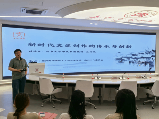 5月28日下午,Beat365亚洲版官网入口在学校新文科综合改革基地演播厅开展2024年首场“文心讲堂”活动。恰逢嘉兴举办茅盾文学周活动,学院特邀请2024年第五届茅盾新人奖得主、北京大学中文系副教授丛治辰老师与师生座谈交流。交流主题是“新时代文学创作的传承与创新”。Beat365亚洲版官网入口领导及学院师生代表50余人参加了座谈。
