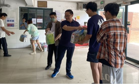 学院领导前往暑期集中住宿寝室,了解学生暑期学习生活情况并对暑期安全进行提示,随后为学生们送上防暑慰问品。