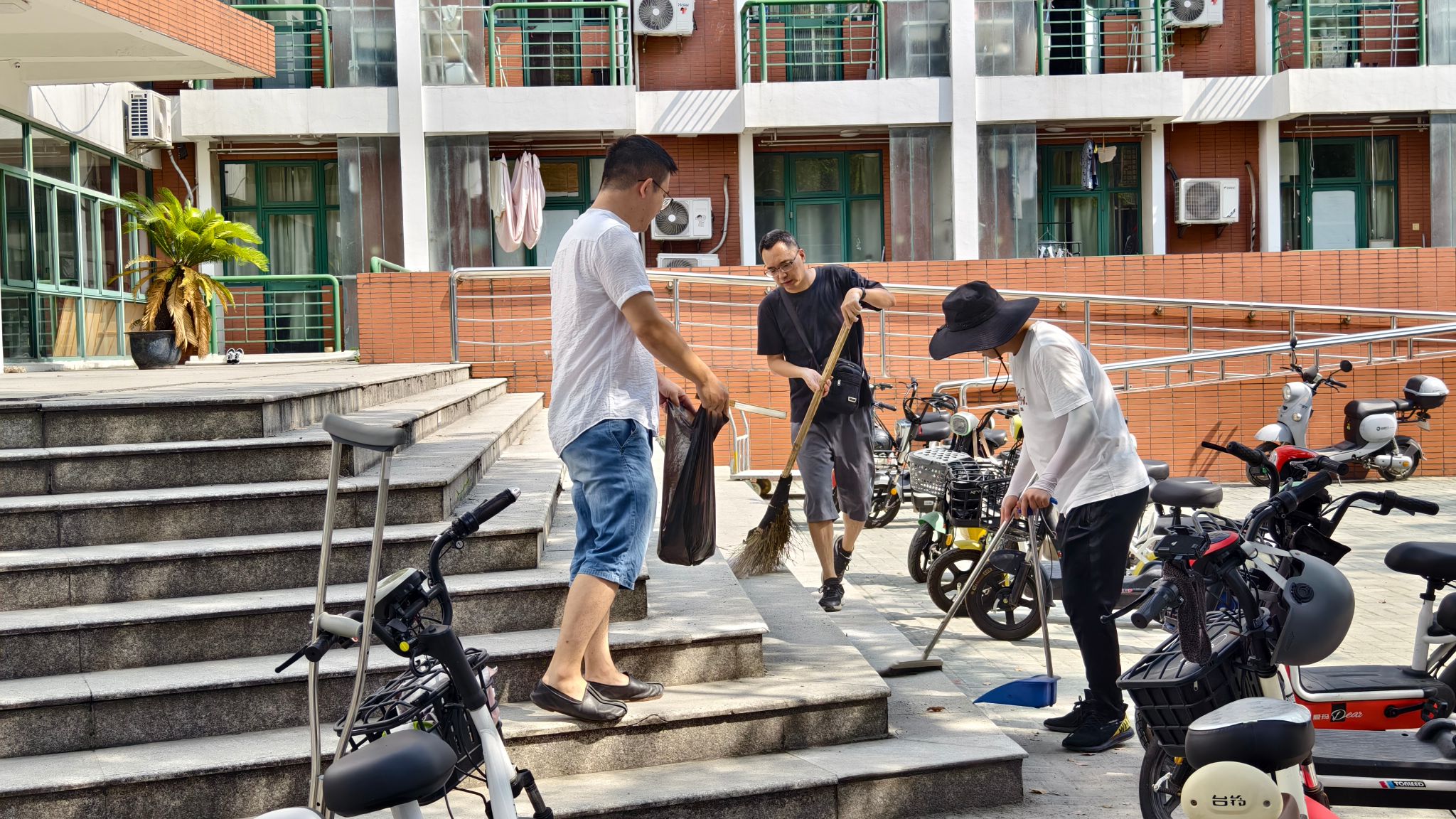 上午,学院组织全体教职工对校园卫生责任区和各办公室进行了卫生大扫除。老师们冒着酷暑,亲力亲为,认真细致清理了地面垃圾与杂物,打扫好办公室,为迎接新学期的学习工作做好充分准备。