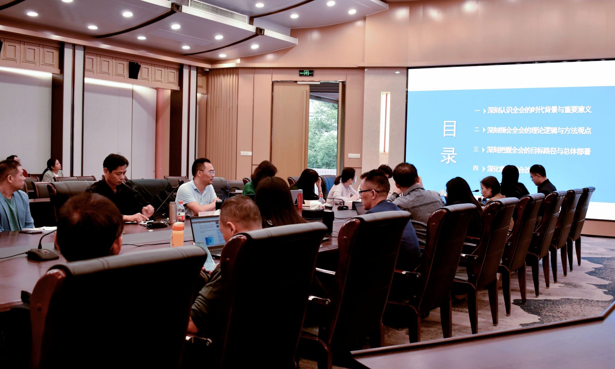 10月25日下午,Beat365亚洲版官网入口举行党委理论学习中心组学习(扩大)会,邀请嘉兴市委党校政治学与法学教研室主任余剑副教授作辅导报告,深入学习贯彻党的二十届三中全会精神和全国教育大会精神。学院党委理论学习中心组成员、教职工代表参加了学习会。