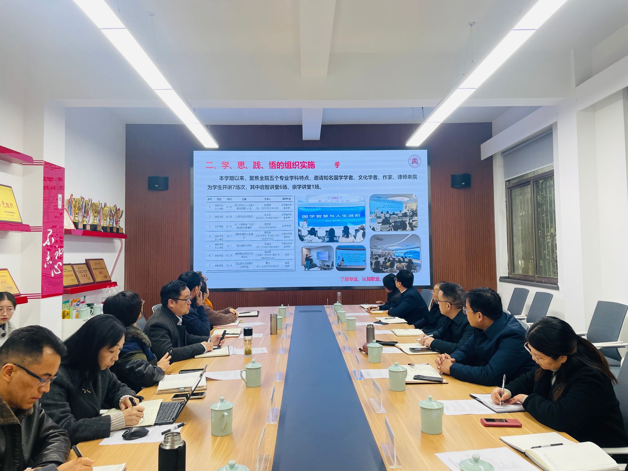 会上,学院党委书记王晨就“南湖证书”育人体系推进落实情况进行汇报,副院长赵伯祥介绍了学院迎评工作准备情况和学院办学特色亮点工作,各专业负责人围绕人才培养、教育教学等方面进行介绍。
