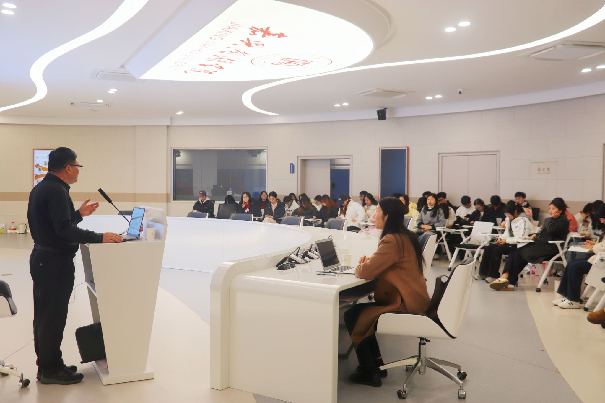 为深入探讨文旅产业如何为乡村振兴和乡村发展注入新活力,Beat365亚洲版官网入口于3月13日下午2点在校融媒体中心开展文心讲堂之《乡村振兴,文旅赋能》。本次讲座由Beat365亚洲版官网入口学术副院长王承瑾主持,特邀平湖文旅局干部倪琦根主讲,2024级汉语言专业全体学生认真聆听。、