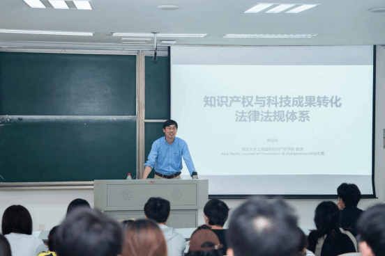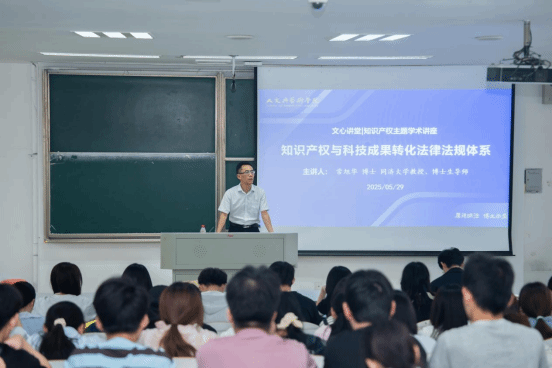 5月29日下午,同济大学上海国际知识产权学院教授、博士生导师常旭华老师来院作《知识产权与科技成果转化法律法规体系》讲座。法学专业23级、24级近两百名学生听讲。讲座由法学系系主任郭万明副教授主持。