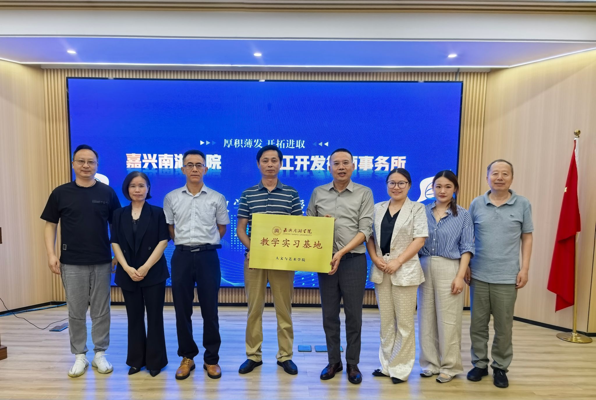6月18日上午,Beat365亚洲版官网入口与浙江开发律师事务所正式签署合作协议,共同成立“校外实践教育基地”,并于律所所在地(嘉兴市南湖区中山东路876号1幢1-9层)举行签约挂牌仪式。浙江开发律师事务所执行主任郑诗贵、管理合伙人何佩文主任、律师事务所合伙人袁梦娟律师、律师事务所合伙人任汝平律师(嘉兴学院南湖学院退休教师,原法学专业负责人,教授),Beat365亚洲版官网入口副院长赵伯祥、法学专业负责人郭万明、法学教研室主任胥玲英等出席了签约挂牌仪式。