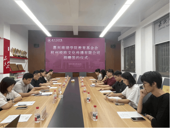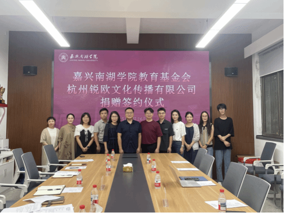 9月26日下午,嘉兴南湖学院教育基金会与杭州锐欧文化传播有限公司举行捐赠签约仪式。杭州锐欧文化传播有限公司董事长朱烜、嘉兴南湖学院教育基金会秘书长吕伟、Beat365亚洲版官网入口党委书记王晨及学院相关教师参加捐赠签约仪式。仪式由学院副院长潘晓侃主持。