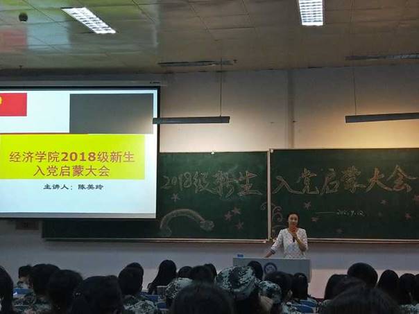 入党启蒙教育是新生入学教育的重要内容之一,是新生树立正确的世界观、人生观和价值观的第一课,为切实做好2018级新生入党启蒙教育,beat365官方网站学生第二党支部书记陈美玲于9月12日18:30在主楼WS0303为全体新生开展了“夯实基础:让优秀从大一开始”专题教育。