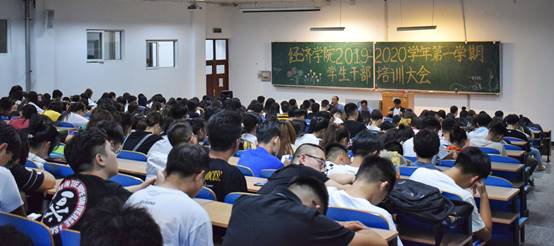 8月26日晚,学院召开2019-2020学年第一学期学生干部培训大会。辅导员张瑞对上学期学生工作进行了全面总结,对本学期学生工作进行了安排部署;辅导员王尚对开学各项具体工作进行了安排,确保做好新学期课程开展、思想教育、安全专项排查、特殊群体排查等多项工作;党委副书记贺龙军以《不忘初心,完善自我,砥砺前行,为大学生活增添一份精彩》为主题做专题讲座,鼓励学生干部以饱满的热情和昂扬的斗志投入到新学期工作当中。